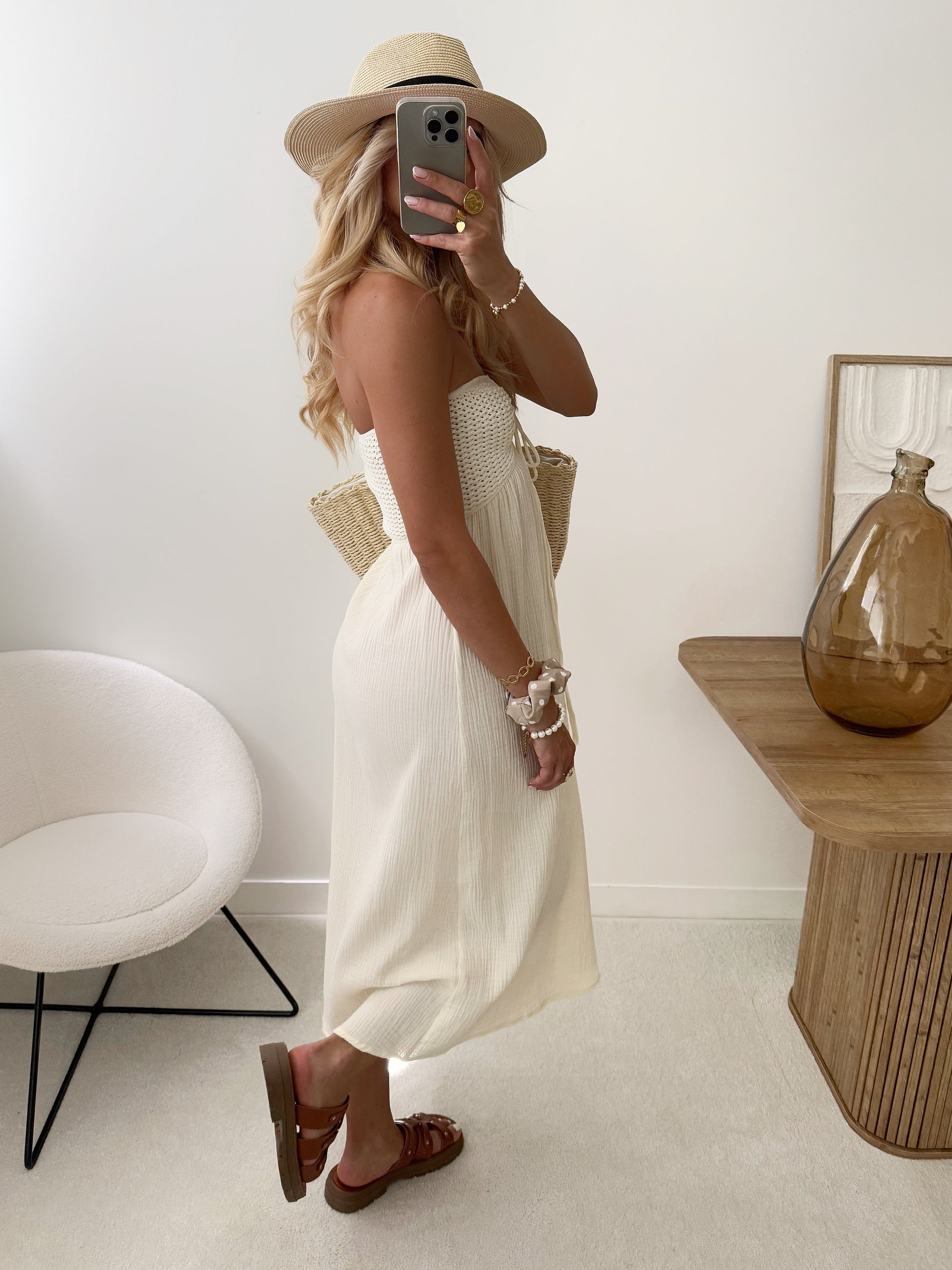 Abito senza spalline SINY in uncinetto e garza di cotone - ecru