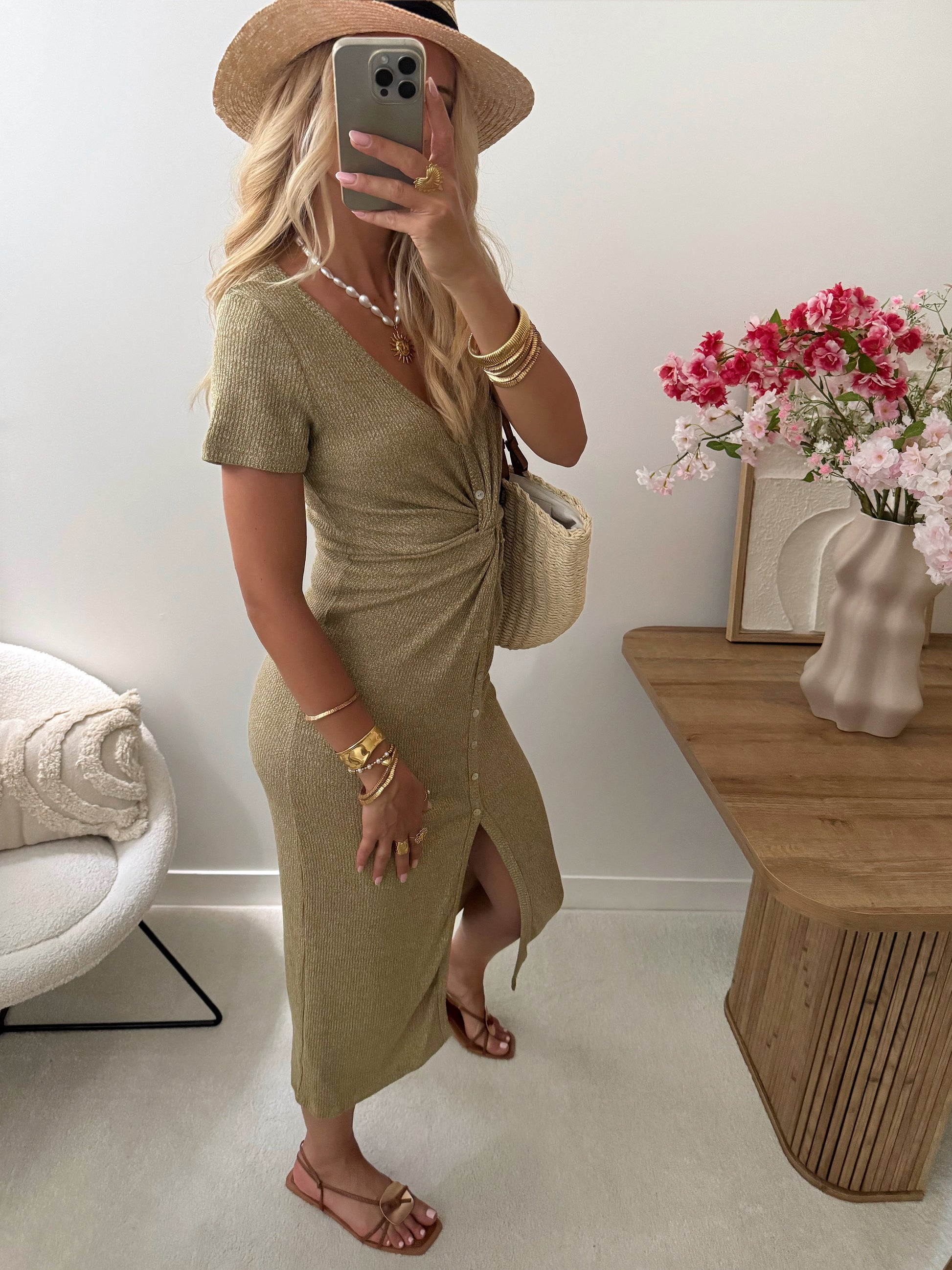 Il maxi abito SAO, dal taglio dritto e minimalista, esalta elegantemente la silhouette. Il tessuto a coste, le maniche corte, la patta con bottoni e lo spacco frontale aggiungono carattere e comfort. Il laccetto in vita definisce la silhouette. Questo capo versatile può essere indossato con sandali o tacchi per un look moderno e senza tempo.