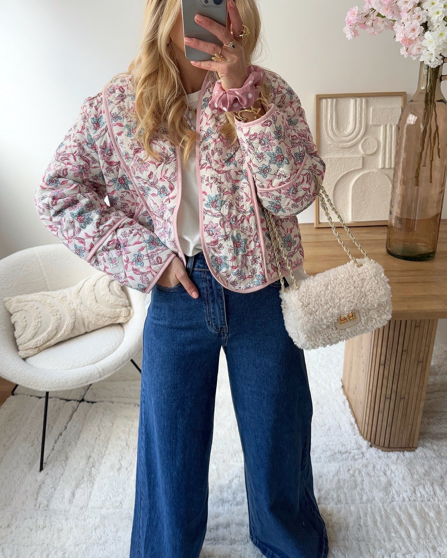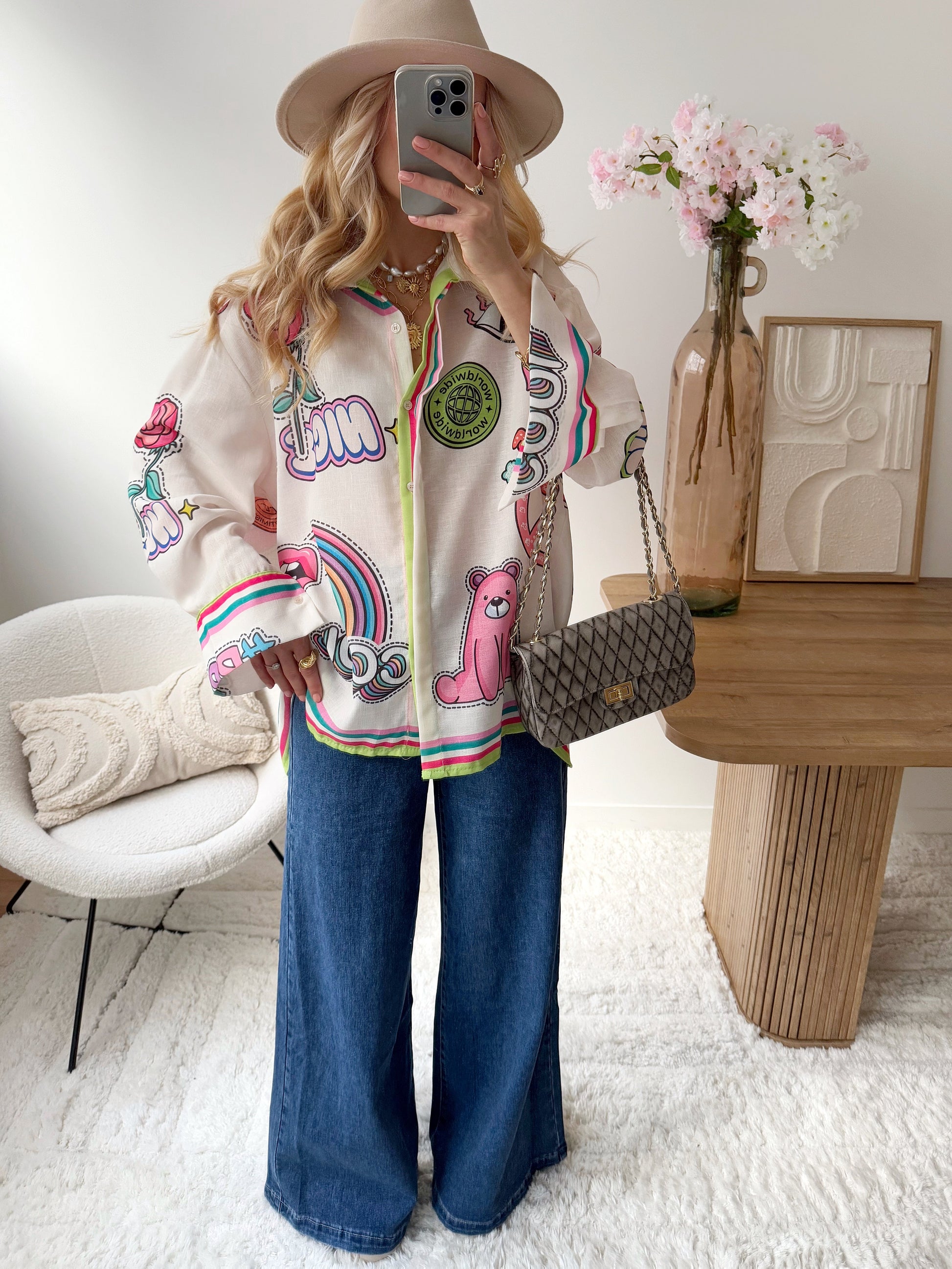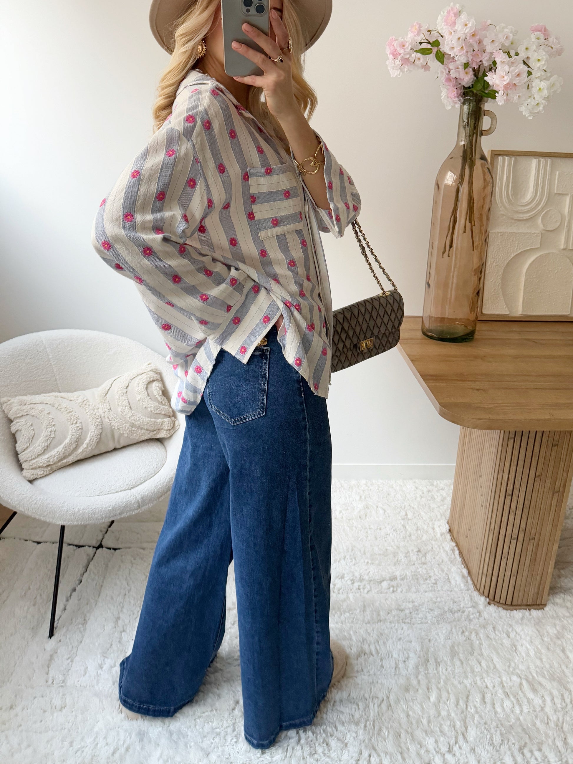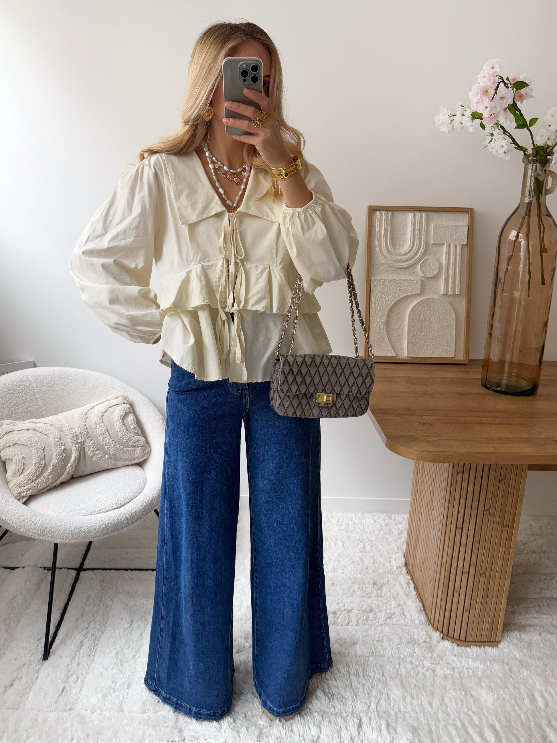 Jean denim évasé à strass