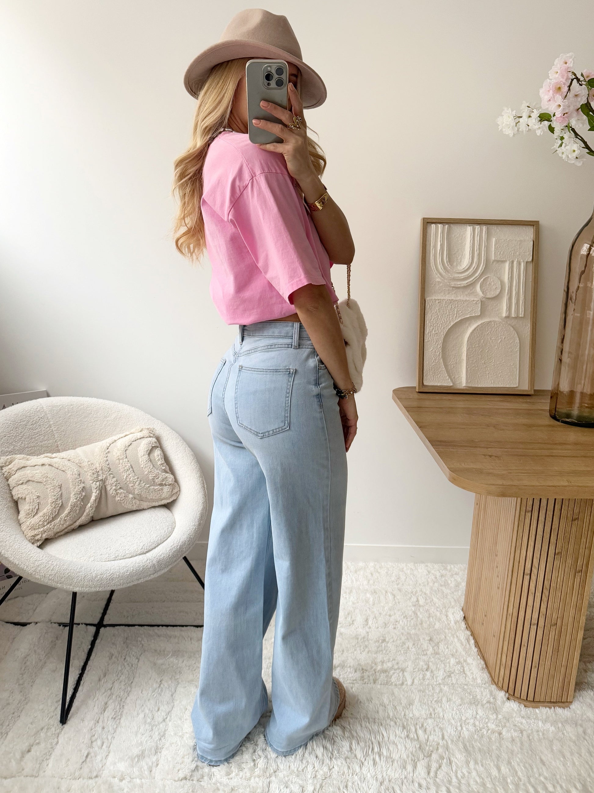 Notre jean CORDELI se caractérise par une silhouette ample et élégante, avec des jambes larges qui s’évasent délicatement à partir des hanches. Sa taille haute accentue la silhouette, tandis que la coupe fluide assure confort et raffinement. Ce modèle allie modernité et sobriété, offrant un look à la fois intemporelle et contemporaine. On peut l'associer à un t-shirt pour un style décontracté ou à une blouse plus élégante pour une touche plus raffinée. Il peut aussi bien se porter avec des baskets qu'avec des chaussures à talons, selon l’occasion.