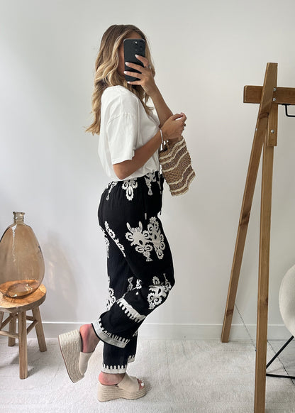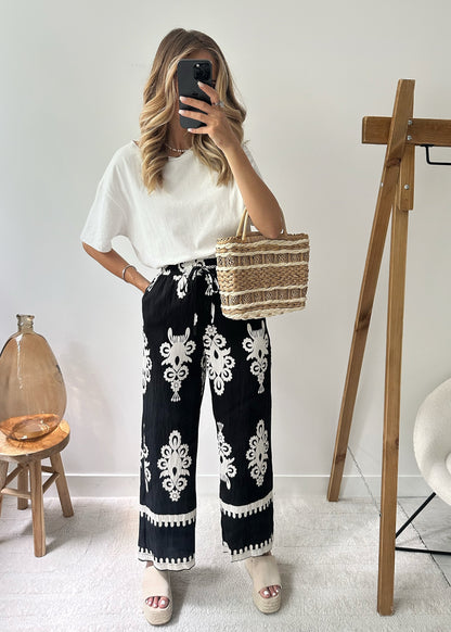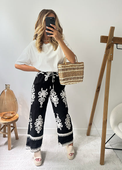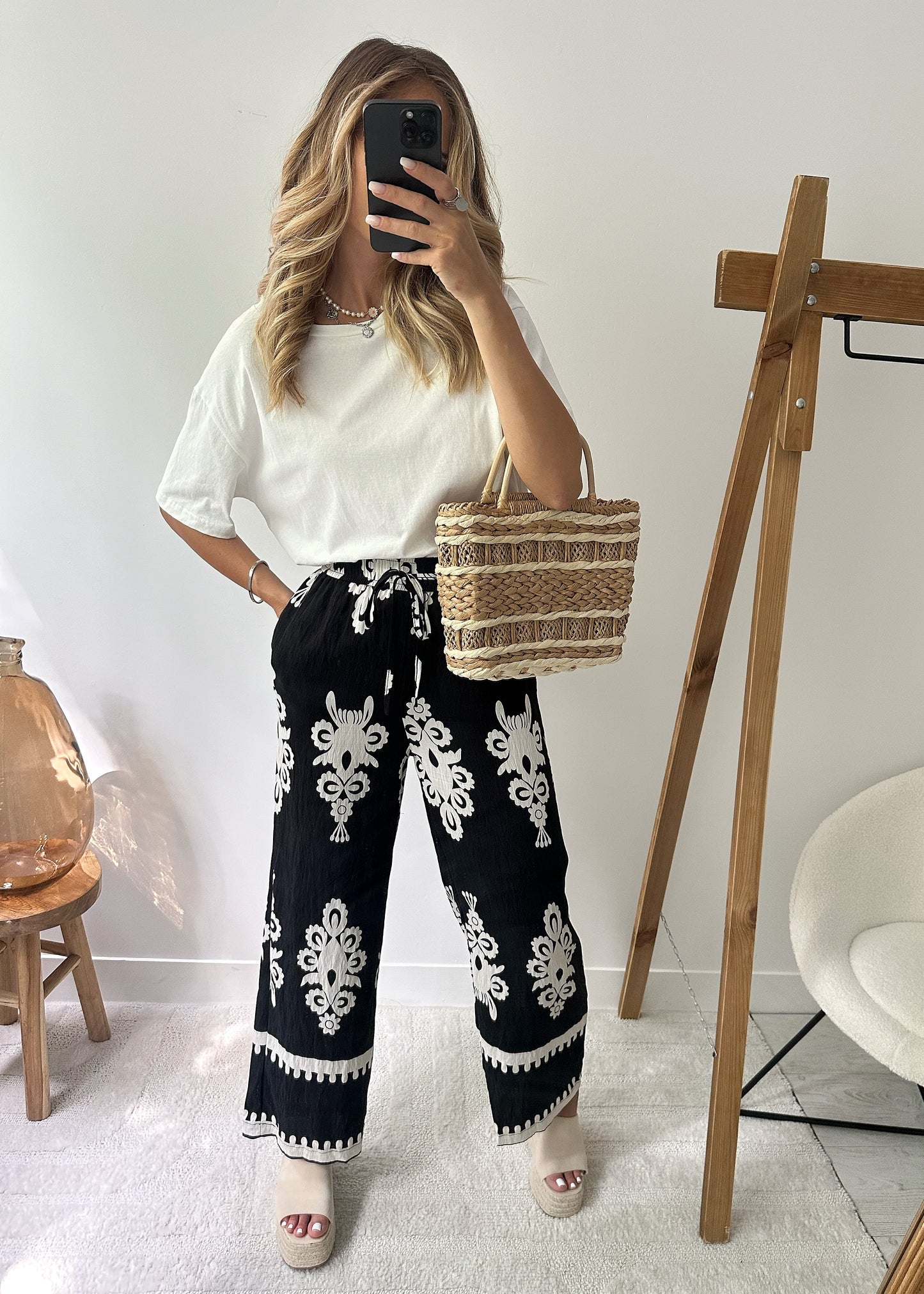Your perfect summer outfit: the DENNY print pants! With their print and flowing linen-effect cut, they offer a look that's both elegant and casual. Ideal for any occasion, these pants are your new must-have.