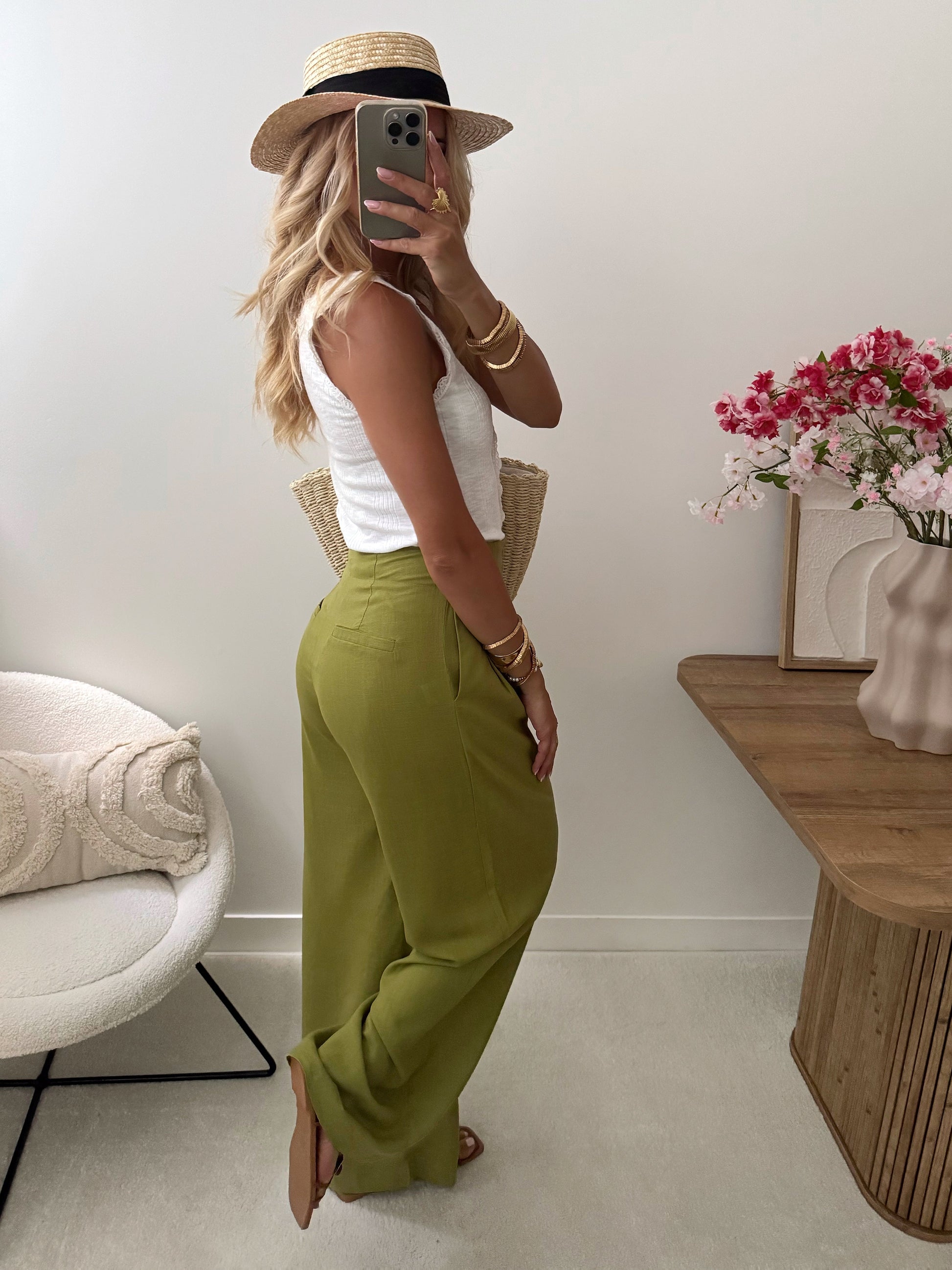 PARAVIA wide linen blend pants - olive green