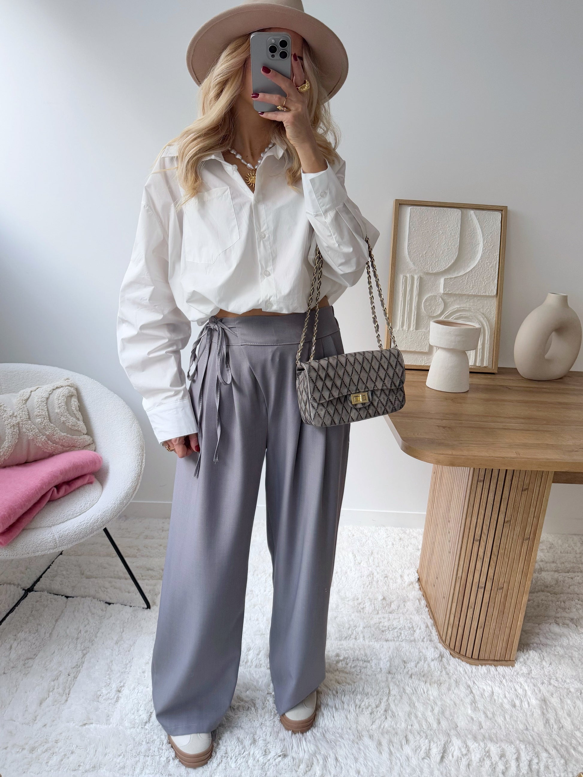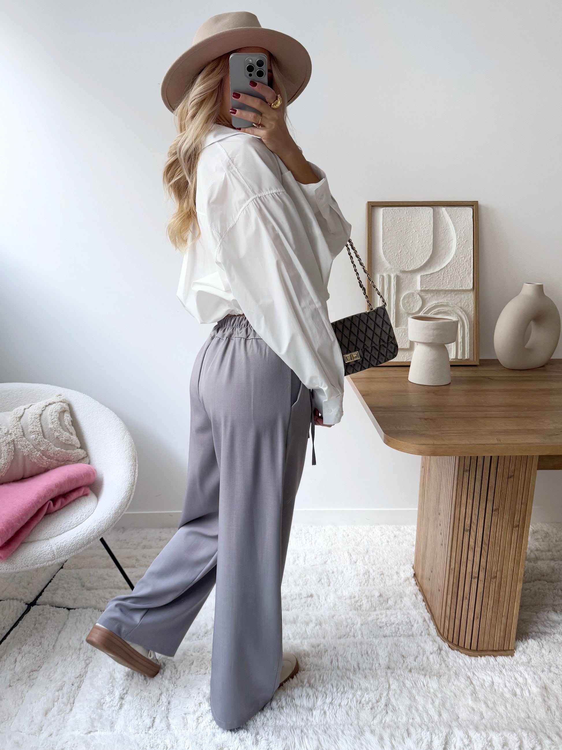 Adopt a stylish and comfortable look with the NAÏG wide-leg pants. Their fluid, lightweight fabric ensures freedom of movement while creating a graceful silhouette. The zipper and button closure guarantees a secure fit, while the gathered elastic at the back waistband provides comfort and fit. The two front slant pockets add a touch of practicality and sophistication, while the front pleats add a nice structure to the fit. These pants are ideal for a casual yet refined outfit, perfect for all your occasions.