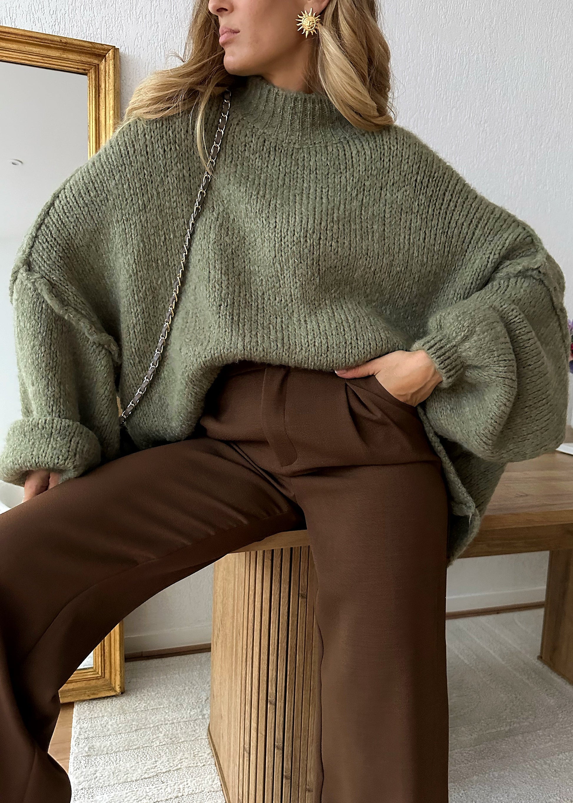 The MARIO knit sweater is a truly iconic piece, both timeless and ultra-trendy. Crafted from a soft, pleasant-to-the-touch knit, it envelops the body in cocooning warmth while remaining lightweight and comfortable. Its modern oversized fit gives it a casual feel. The funnel neck adds a touch of sophistication while providing extra protection from the cold. Available in several colors, this sweater is a true must-have of the season, easy to pair with a multitude of outfits. A key piece in Mamie Bourgeoise's wardrobe, where refinement meets simplicity.