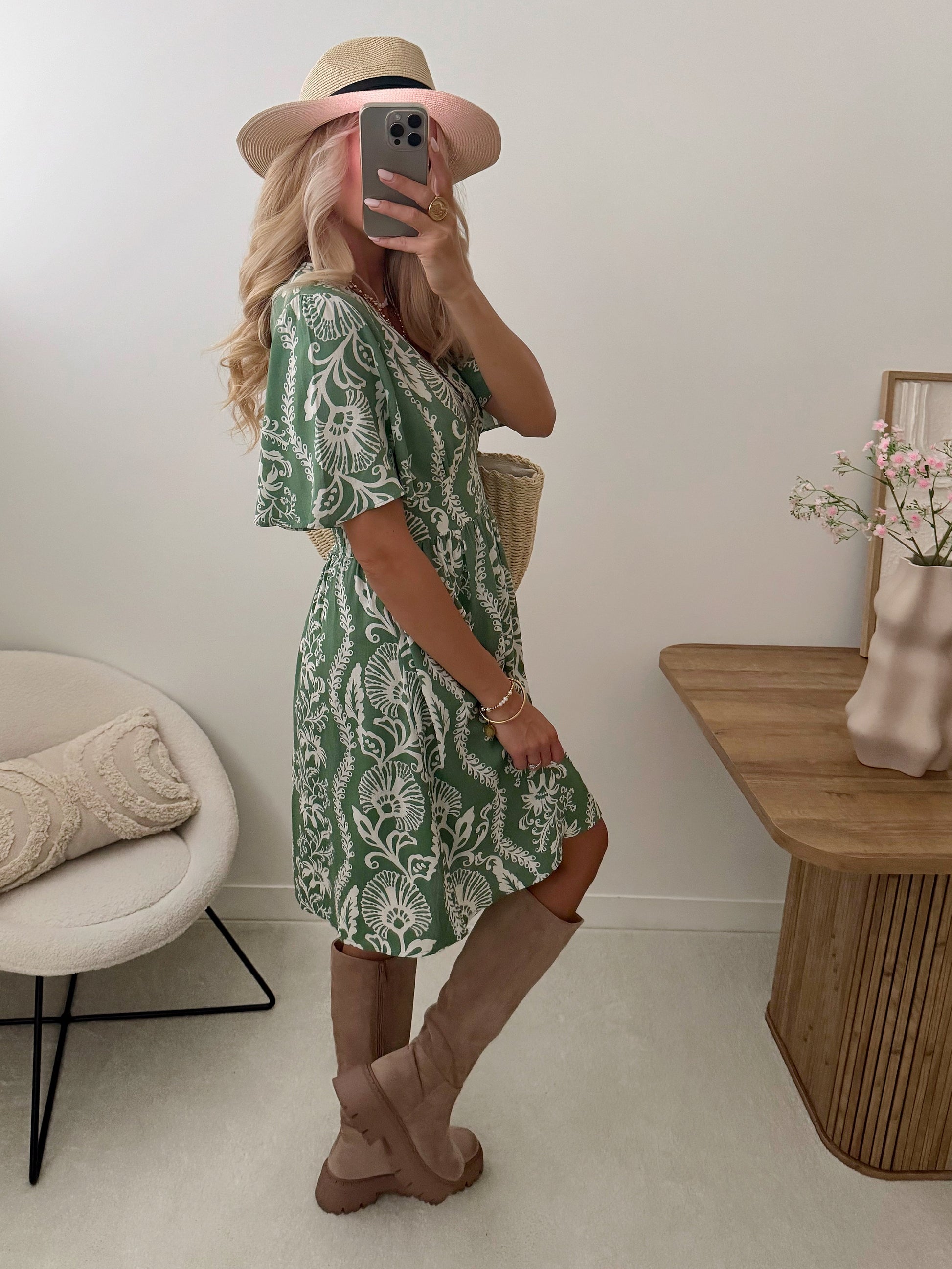 Fall in love with the feminine and easy-to-wear FILIA floral dress. Its V-neckline and flared cut delicately enhance your figure. The gathered, elasticated waistband adapts to all body shapes, while the lining ensures comfort and opacity. Ideal for sunny days, it can be worn both in the city and on vacation, with sandals or espadrilles.